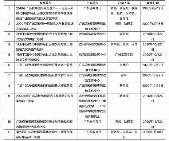 回顾2020年,ky开元易班发展中心在“德学五进”教育思想引领下,共建“德学·五进”网络工作室(入选第一批广东高校网络文化示范工作室共建培育项目),以迎评促建为动力,打造成为丰富学生们校园文化生活、拓宽知识视野、提升综合素质的综合性网络文化基地,培养了一支优秀的学生骨干团队,并积极组织学生参与各类比赛项目,共获得省级奖项11项,其中包括广东省教育厅举办的第五届广东高校网络媒体展示节主题原创作品征集活动二等奖、“当代中国马克思主义——习近平新时代中国特色社会主义思想主题教育与青年学生使命担当”主题教育项目大赛三等奖、教育部易班发展中心举办的“习近平新时代中国特色社会主义思想线上主题征文”优秀组织奖等。这些获奖展示了ky开元易班发展中心和网络工作室的阶段性成果,将勉励师生团队为ky开元集团官网的加速发展作出积极贡献。