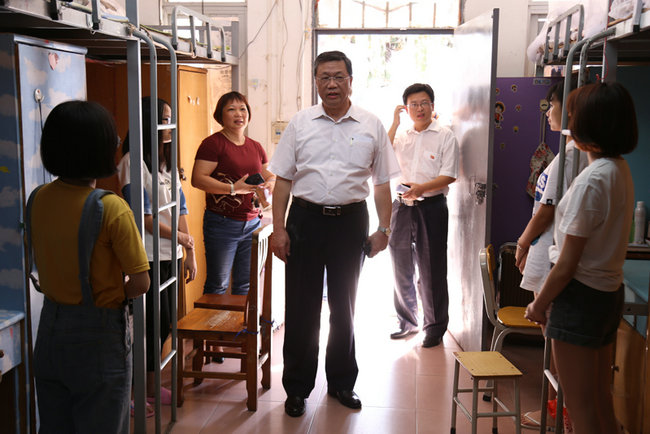 在学生宿舍,院长邝邦洪教授详细询问同学们来自哪里、饮食上是否适应、生活上是否习惯、入校后的感受等情况。并嘱咐新生多与同学和老师沟通交流,尽快适应新环境,融入新集体,努力学习知识,不断提高综合素质,不虚度大学生生活的每一天。钟书记在走访两个校区新生宿舍时,特别叮嘱新生尽快适应从中学生向大学生的转变,要搞好同学之间的团结,加强个人安全意识和安全防范。