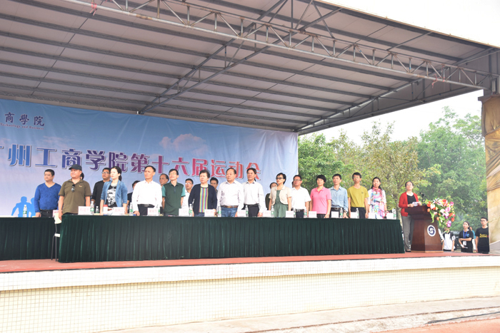 运动会在庄严的国歌声中拉开了帷幕,各个系的国旗方阵井然有序,意气风发地经过主席台,展现了广工商学子们精神抖擞、活力四射的一面。开幕式上,学院副院长朱特威致开幕辞,他在致辞中指出:一年一度的运动会,是我院贯彻党的教育思想方针,秉承“正德厚生 励志修能”的校训,进行“五进”之进体育场馆的要求,大力推进素质教育的重要体现。一个人的全面发展,不仅需要高尚的道德情操,丰富的科学文化知识,良好的人文素养,更需要健康的体魄。为此,他倡导我们积极投身于体育运动,能使健康第一,终身体育的现代体育思想和每天锻炼一小时,健康工作五十年,幸福生活一辈子的体育理念更加深入人心,并希望全体运动员牢固树立友谊第一,比赛第二的思想,发扬更高、更快、更强的奥林匹克精神,并预祝第十六届运动会取得圆满成功。紧接着,运动员及裁判员宣誓。学院第十六届运动会由副院长、学院体育工作委员会主任朱特威宣布正式开幕。