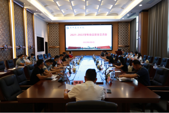 【本网讯】为提升各餐饮单位管理服务水平,促进各单位之间的学习交流,6月6日上午,后勤处在花都校区图书馆组织召开2021-2022学年食品安全交流会。学校副校长朱特威、后勤处负责人、食堂专管员、学校各餐饮单位共33人参加。