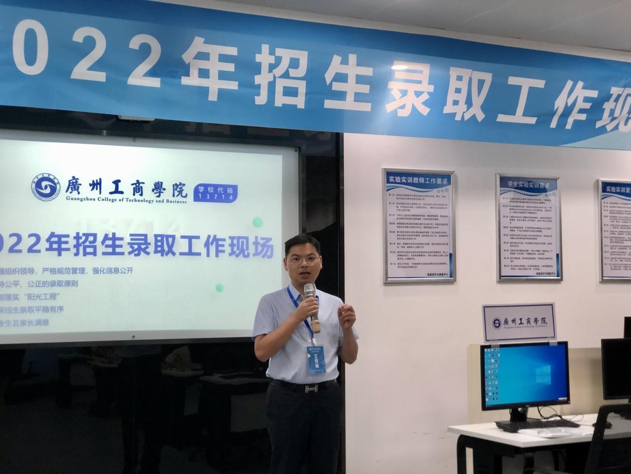 录取现场,招生就业办主任陈豫岚介绍了广东省今年新高考改革对招生录取工作带来的新变化和新情况,对招生录取期间的相关工作做出具体安排,着重对录取注意事项进行了详细说明,并强调在录取后各学院新生辅导员要准确掌握学生基本信息,关注每个新生基本情况,做好新生服务工作。