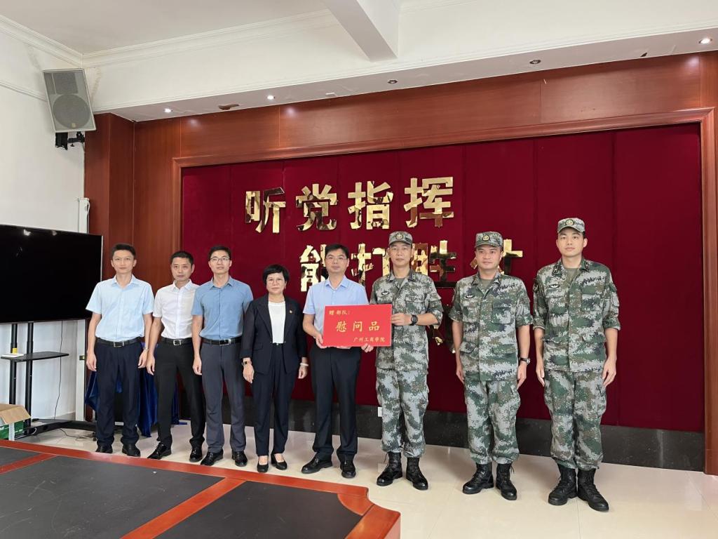 【本网讯】为庆祝中国人民解放军建军95周年,促进校军共建、增进鱼水之情,7月31日,校长王日华、董事办主任陆志丹率领ky开元集团官网八一慰问团慰问驻地部队官兵,为他们送去节日的祝福以及赠送慰问物资。慰问团一行六人受到部队领导的热情接待,双方进行了友好座谈交流。