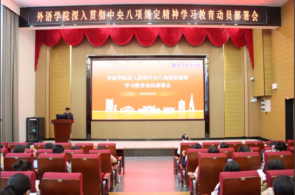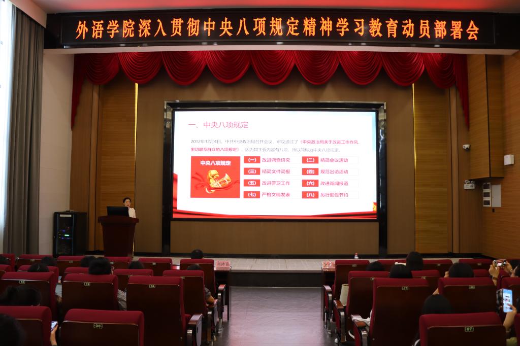 本次动员部署会议为全体师生党员进一步贯彻落实中央八项规定精神指明了方向,强化了纪律意识与责任担当。外语学院将持续深化学习教育成果,切实将中央八项规定精神融入日常教学、管理与服务工作中,以扎实的作风推动学院各项事业不断迈向新高度,为学校的高质量发展与人才培养目标的实现贡献力量。