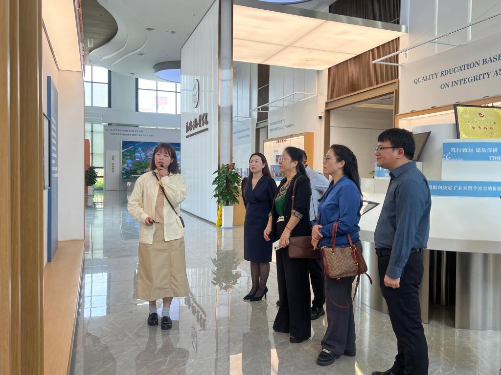 交流结束后,在福州外语外贸学院财务与会计学院相关人员的陪同下,任道纹一行参观了校情展示馆。深入了解了福州外语外贸学院的发展脉络、文化传承和办学成就,感受到了学校深厚的文化底蕴和独特的校园魅力。