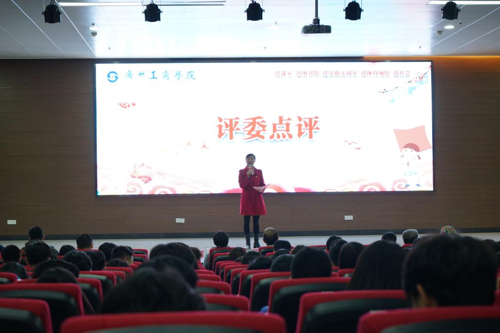 评委姜云霞教授从主题、内容、形象等方面对每一位选手进行了点评。评委们认为,这一次活动以歌颂祖国、歌颂新时代、歌颂广工商为一个切入点,是值得点赞的。选手形象靓丽、口齿清楚、仪表整洁,代表了新青年的形象,代表了广工商学子的形象。通过演讲比赛,让广大学子切身感受到祖国七十年来发展的巨大变化以及学院的飞速发展,增强大家自豪感与归属感,引导学子们把自己对爱国、爱党、爱校的情感落实到具体行动上。