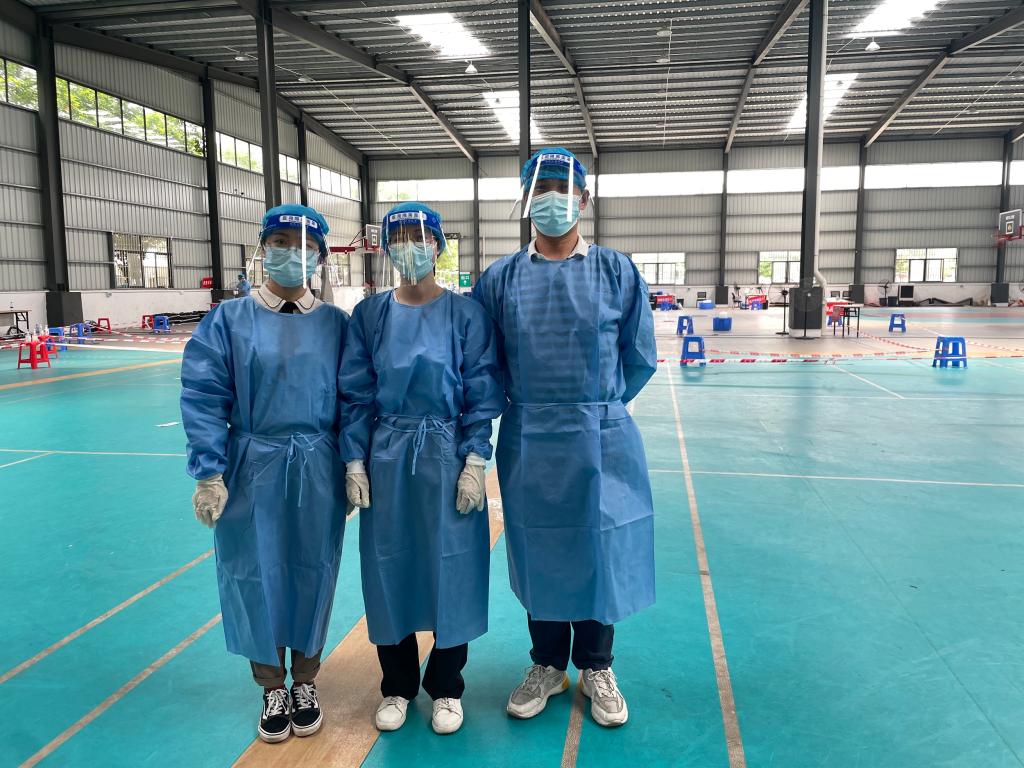 4月27日,会计学院教师党员志愿者早早到达核酸检测现场,按照校团委统一安排,主动承担起现场维持秩序、查码测温、核酸检测信息录入的任务。烈日炎炎,防护服下早已汗流浃背,尽管如此,志愿者们仍有条不紊的进行着各项工作。从教书育人到疫情防控,变的是工作岗位,不变的是他们的责任和担当,在疫情期间充分展现出教师党员当先锋、打头阵、作表率的风采。