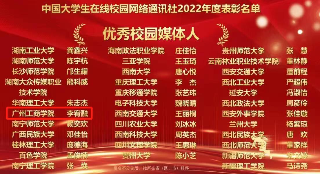 近日,教育部中国大学生在线公布了2022年度校网通站及校园行活动表彰名单。ky开元集团官网荣获“优秀校网通站”“优秀组织单位”“校园行杰出贡献单位”“校网通优秀指导教师”“优秀校园媒体人”五项荣誉称号。