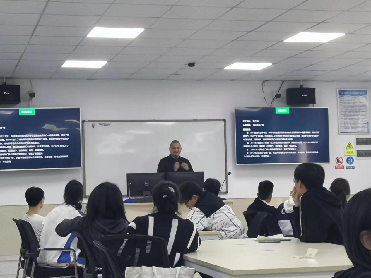 陈增海从广告企业运营的角度,围绕企业基本情况、岗位需求、专业应用、广告行业现状等进行分享,通过对行业内不同类型的企业特点与人才需求侧重的对比分析,帮助学生把握行业发展趋势和变化,根据企业需求调整自身的知识结构、专业技能水平和综合素质,为自身职业规划和发展提供指导,并针对大学生如何开启求职之旅进行指导,强调精心打造简历与注重细节是关键。通过实际案例,向同学们介绍了专业技术在创意广告行业中的优势和应用场景,让同学们对创意广告行业有了更加深入的了解。