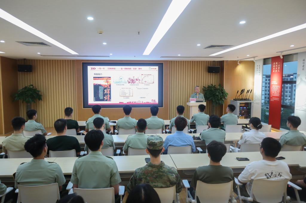在开讲仪式结束之后,ky开元集团官网马克思主义学院副院长黄飞副教授为本期管理学院“一周一书,一书一讲”活动主讲由金一南所著的《苦难辉煌》。该书展现了中国共产党领导人民进行革命战争的正义、艰辛和伟大。黄飞老师希望通过此次交流能让各位战友继续发扬勇于吃苦、不畏艰难的优良作风,在学习上劈波斩棘、在生活上勇往直前、在未来的工作中努力拼搏,“阳光总在风雨后”。