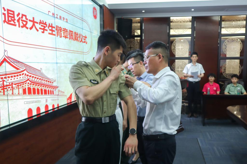 紧接着,朱特威副校长等领导为退役大学生佩戴退役大学生臂章,并对他们的辛勤付出和卓越表现给予了高度评价。耀眼的臂章不仅是对他们过去努力的肯定,更是对他们未来奋斗的激励。