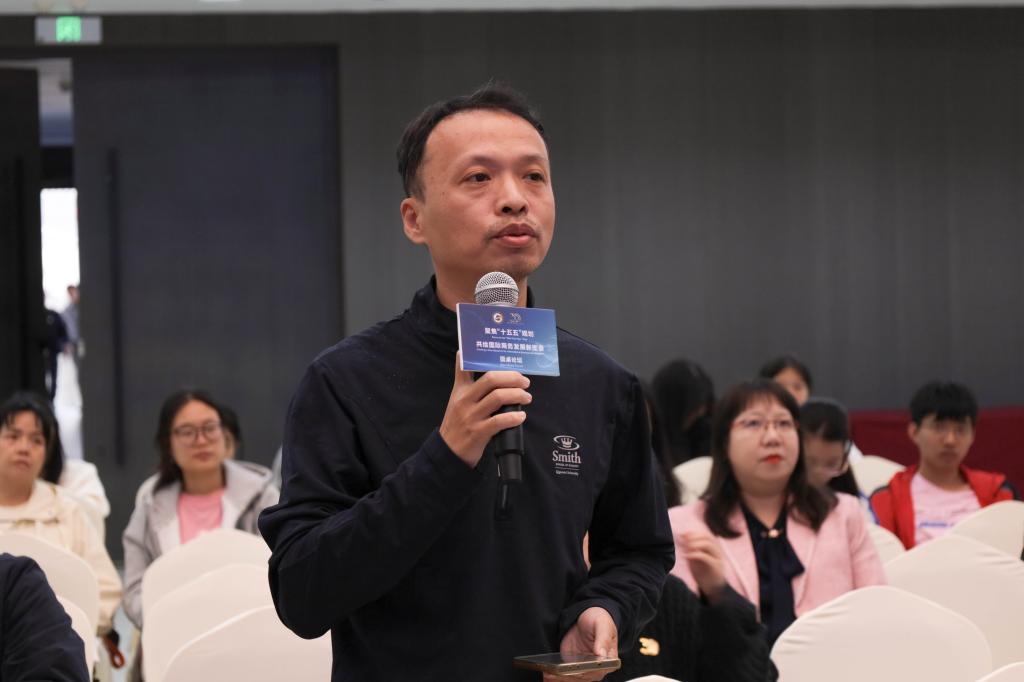 圆桌论坛围绕“地缘政治冲突与国际商务战略”“绿色金融赋能中国链转型”等议题,六位专家依次发表真知灼见。中国纺织品进出口商会曹甲昌会长以翔实数据剖析当前贸易壁垒新形态,提出“三链同构”应对策略;内蒙古财经大学张志明副校长创新性提出“一带一路韧性建设”理论框架,引发全场热议。最具亮点的是圆桌对话环节,当主持人抛出“中小外贸企业如何突围”时,专家们现场支招:“企业海外投资需融入长期战略,聚焦创新与关系,依托优势强化主导权。”这些金玉良言赢得阵阵掌声。
