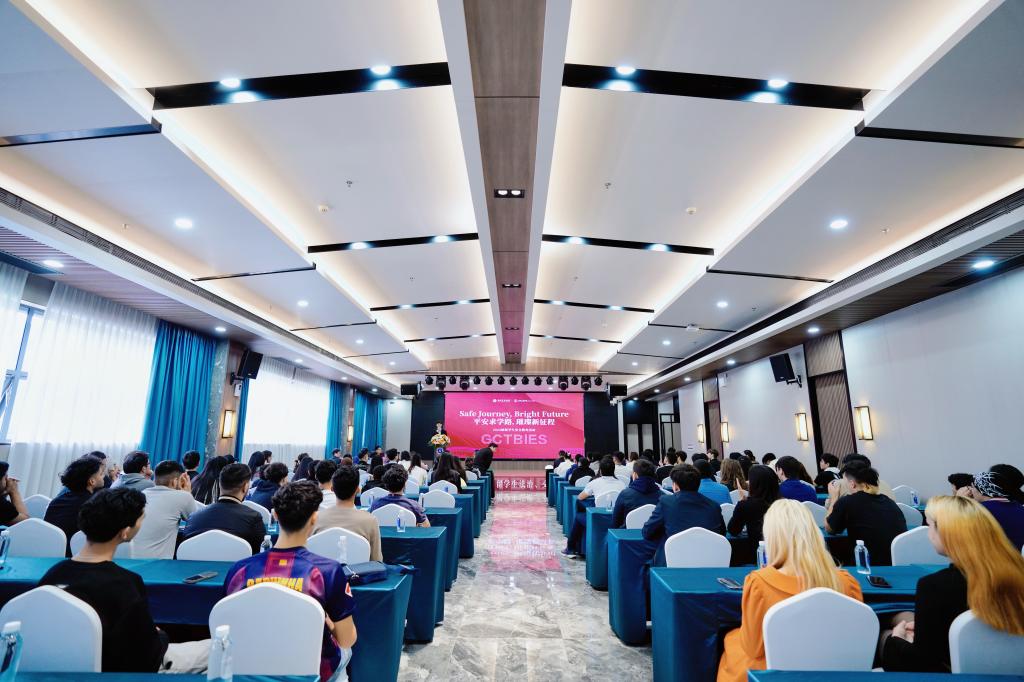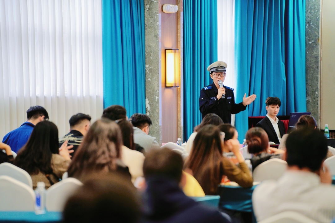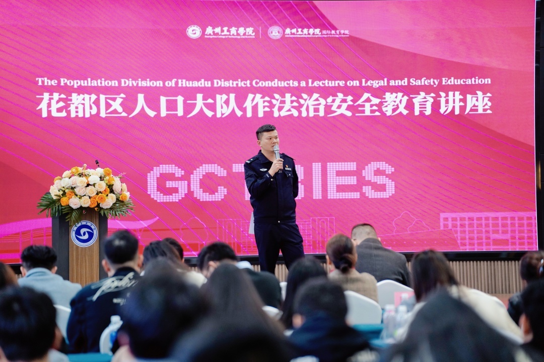 在法治安全教育环节,花都区公安分局人口大队警官围绕签证种类、住宿登记要求、居留许可办理流程等核心内容展开详细讲解,明确未按时办理住宿登记将面临警告或罚款,且会影响未来签证申请。同时,警官着重强调中国对毒品管理的严格性,警示留学生远离非法就业、外币黑市兑换等违法行为,详解故意伤害、盗窃等常见违法犯罪的后果,提醒大家积极配合公安机关核查工作。