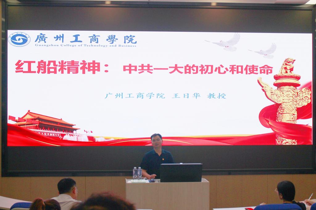 王日华教授从中共一大的代表、过程和成果三个方面展开,深入讲解了一大代表的选择与命运、一大筹备与召开过程的波折与艰辛、一大纲领和决议等文件,结合习近平语录,教育引导师生要坚定使命,不忘初心,始终铭记来时的路。