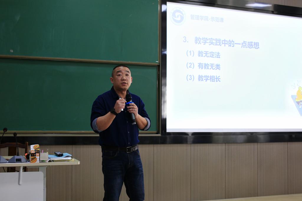 【本网讯】为了进一步提高教师教学质量与水平,给教师提供教学交流平台,管理学院于12月9日下午在实I-C204开展教师教学示范课。活动由吴东泰教授主持,张塽老师和朱青山老师进行示范教学。学校质评中心专职督导高荣发教授、质量监控科林银花科长莅临指导,全院教职工参加。