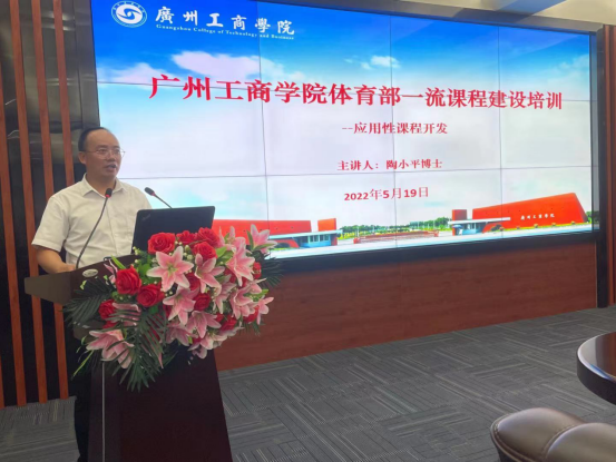 【本网讯】为做好《大学体育》校级一流本科课程建设,5月19日下午体育部开展了以“基于超星学习通软件教学模式在《大学体育》课程建设中的探索与实践”与“应用性课程开发”为主题的培训活动。培训采用专题讲座形式,体育部教师陶小平博士担任主讲,全体专任教师参加培训。体育部主任刘嘉丽教授主持。