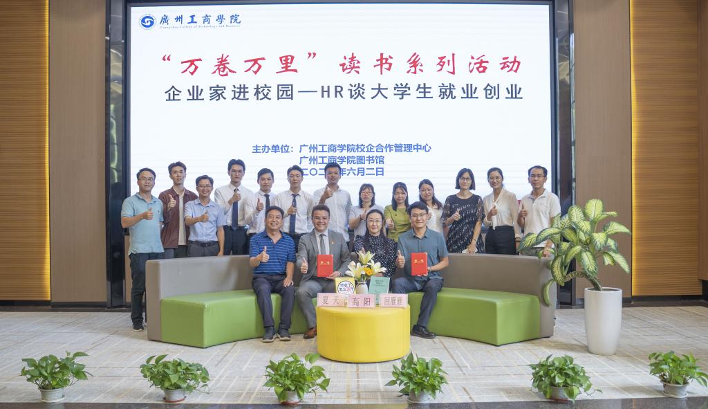 【本网讯】为帮助毕业生进一步了解企业的用人需求,更好地促进大学生就业创业,在学校副校长易露霞的倡议和推动下,6月2日下午,学校校企合作管理中心联合图书馆,借助“万卷万里”读书平台,在花都校区图书馆举办“企业家进校园—HR谈大学生就业创业”专题访谈活动。活动特别邀请东莞证券股份有限公司广州分公司副总经理高阳、美好生涯学院联合创始人、佛山市就业创业研究会副会长夏天担任嘉宾,以“线上+线下”的方式,为师生进行就业创业讲解和经验分享。活动由图书馆回雁雁馆长主持,图书馆王自东副馆长以及校企合作管理中心、图书馆的老师和在校大学生150多名人参加了访谈活动。