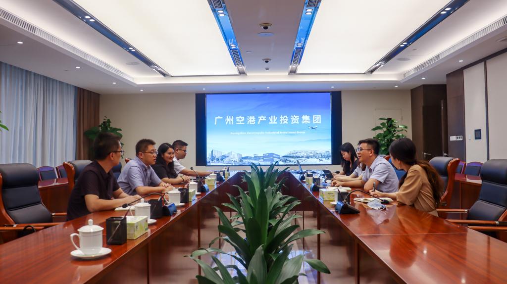 调研团队首先参观广州空港智荟花都(国际)青创中心,随后与企业进行座谈交流。空港产业投资集团蒙总介绍广州空港经济区的空港区位、管理体制等基本情况,朱总着重介绍了广州空港产业投资集团具体业务布局“城市服务、产业发展、金融服务”三大主业。在交流过程中,林波院长在商学院专业建设与学科建设十四五规划基础上,与企业方探讨在人才培养、联合培训、联合科研等具体合作细节,同时阐述将校企合作、产教融合的模式落到实处的实施路径。参会人员和专业教师就具体项目与空港投资集团相关负责人进行了深入探讨。