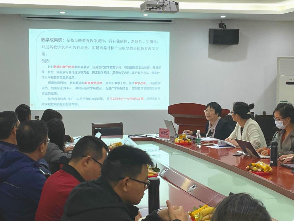 【本网讯】为进一步提高管理学院教师教学研究与改革能力,及时总结交流先进的教育改革创新实践,引导教师更好培育和凝练教学成果,加强对教学成果申报工作的有效推动,提升教学成果奖申报的质量,我院于2021年12月1日在院部楼召开“2021年教学成果奖申报专题培训会”。培训会邀请学校教师教学发展中心广东省教学名师宋粉云教授担任主讲,由管理学院副院长梁春树主持,学院副院长、教研室主任、骨干教师、院校级一流课程负责人、院校级质量工程项目负责人及课程群组长等共30多人参加。