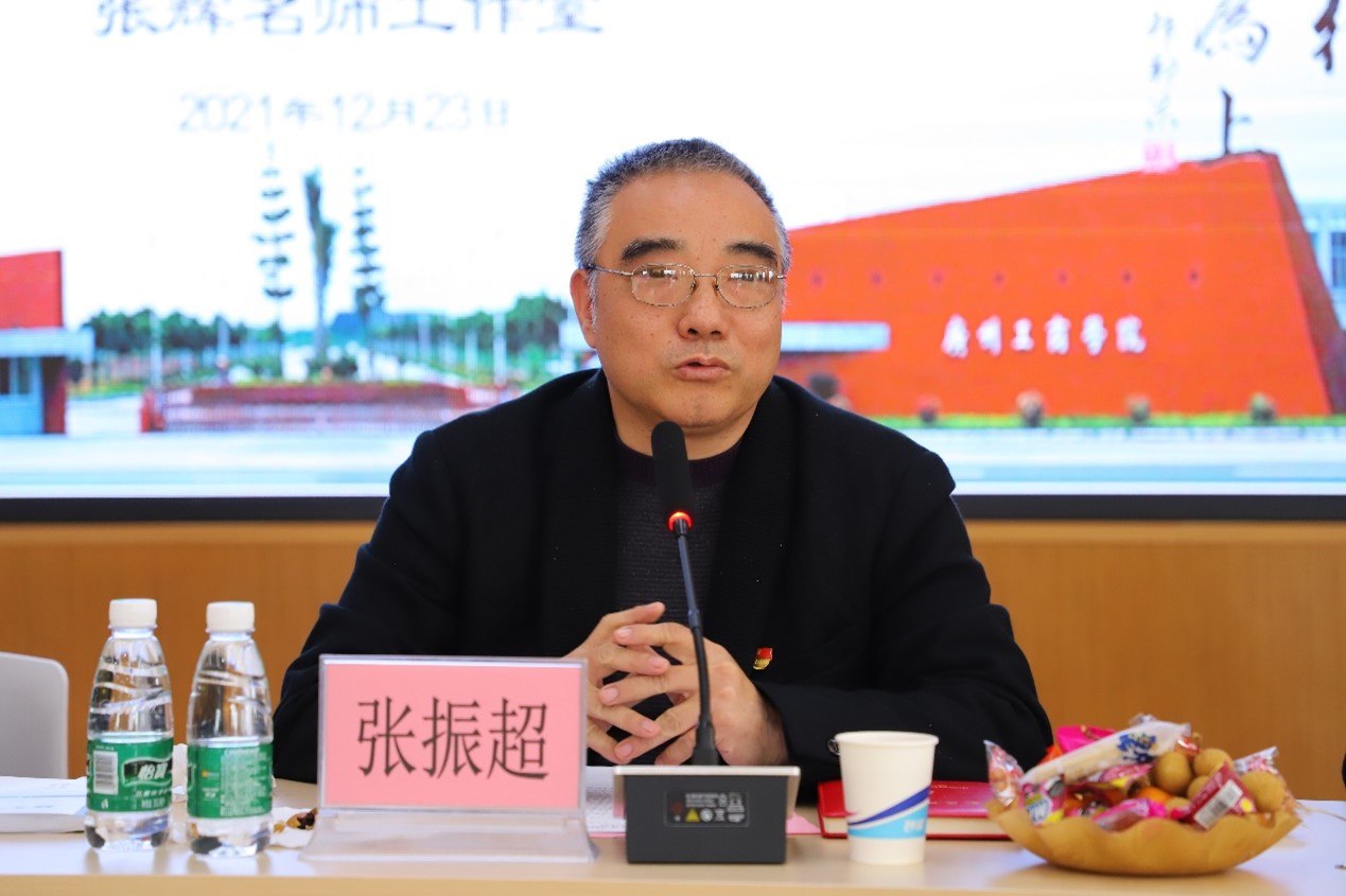 张振超书记围绕研讨会谈了体会与感受,并充分肯定了各工作室的成绩。他指出,新形势下,学校党建和思想政治工作要突出立德树人根本任务,以理想信念教育为核心,引导广大师生增强“四个意识”,坚定“四个自信”,做到“两个维护”。他对大家明确继续努力的方向提出了四点工作希望。一是要进一步加强学习研究创新理论,解放思想,以专业引领、示范辐射、成长探索和教育研究为使命,继续为中华民族伟大复兴、为学校新一轮高质量发展作出更大贡献。二是要坚持党建引领,强化理论学习,发挥各工作室头雁作用,筑牢学校“三全育人”根基;三是要立足学校“德学引领,五进育人”特色,贯通课内课外,促进思政课程和课程思政理念协同、内容协同、教师协同、教法协同、管理协同,拓宽“三全育人”渠道;四是要强化协同创新,推动育人主体协同、育人资源协同、育人环境协同,形成“三全育人”合力。