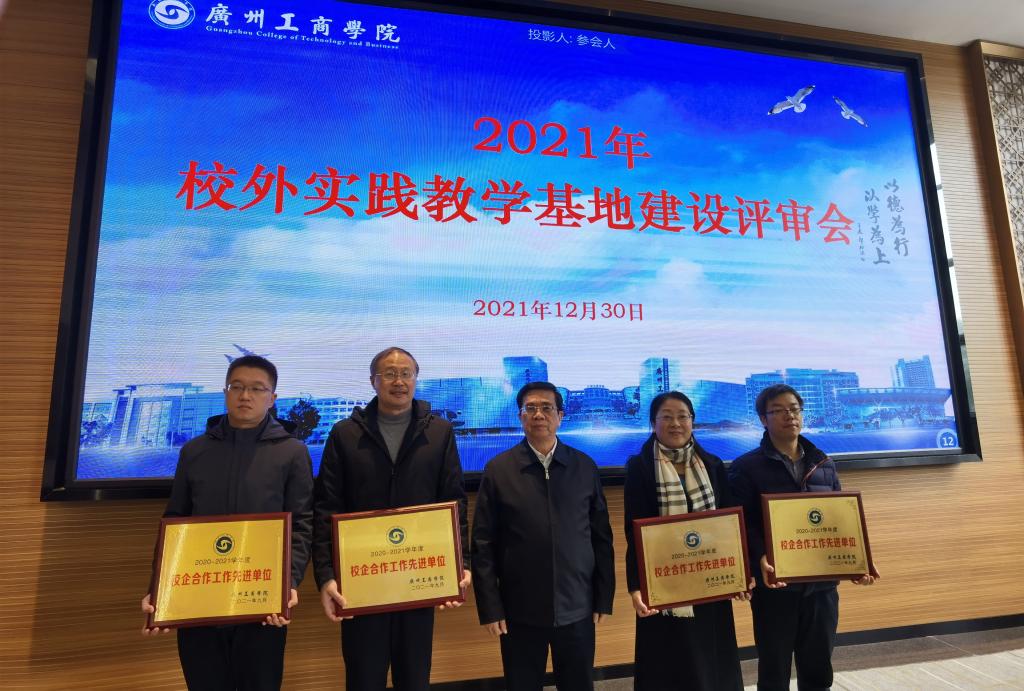 最后,邝邦洪校长、张辉副校长分别为通过评审的校外实践教学基地和获得2020-2021学年校企合作工作先进单位的学院授牌,并合影留念。(校企合作管理中心)