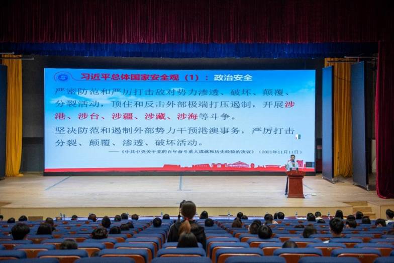 王日华校长以“深入学习习近平总书记总体国家安全观”为题,结合《中共中央关于党的百年奋斗重大成就和历史经验的决议》及习近平总书记系列重要讲话精神,从政治安全、领土安全、军事安全、核安全、经济安全、文化安全、社会安全、科技安全、网络安全、生态安全、资源安全、海外利益安全等十二个方面全方位、具体介绍了习近平总体国家安全观。
