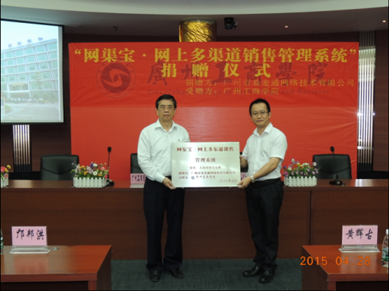 广州易麦通网络技术有限公司向我院捐赠“网渠宝”电商管理系统,捐赠仪式于4月28日在花都校区举行。学院院长邝邦洪教授、易麦通网络技术有限公司董事长黄辉古先生出席了捐赠仪式。
