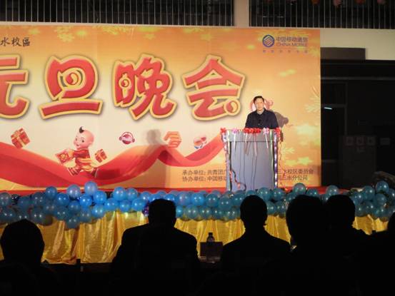 校园网讯 记者刘晓欣 摄影熊凯彬 吴伟超 2010年12月29号晚上八点,广州工商技术职业学院三水分校区于教学楼AB栋之间举办了三水校区2011年元旦晚会。出席本次晚会的领导的学院党委钟伟强书记、三水校区管委会朱特威主任、学生处黄鹏处长、财务处黄金要处长、学生处詹海文副处长、学院党委办公室谭全副主任、学院团委陈豫楠书记以及各部门的老师。晚会开始之前先由学院党委钟伟强书记作了新年致辞,表达了对同学们节日的祝福和问候。