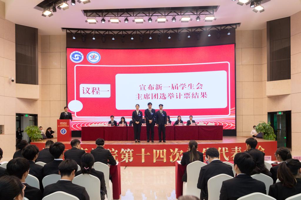 校学生会第十三届学生会主席团成员李思铭代表第十三届学生会作了主题为《担当时代使命共创青春辉煌为学校加快建成高水平应用型大学注入青春力量》的工作报告,回顾总结了过去一年学生会的工作情况和成效,聚焦未来学生会的工作方向,提出了进一步加强思想政治建设等工作展望。