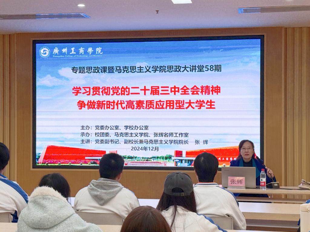 为深入学习贯彻党的二十届三中全会精神,贯彻落实习近平总书记关于教育的重要论述特别是在学校思想政治理论课教师座谈会上的重要讲话精神,落实立德树人根本任务,12月16日晚,ky开元集团官网专题思政课暨马克思主义学院思政大讲堂第58期在三水校区举行。本次讲座由ky开元集团官网党委副书记、副校长兼马克思主义学院院长张辉教授主讲。马克思主义学院教师代表、张辉名师工作室成员、各学院学生代表参会。