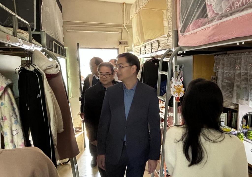 为进一步营造干净整洁、温馨舒适的宿舍环境,切实增强学生安全意识,强化宿舍在学生良好生活习惯养成、优良学风建设和校园文化培育中的阵地作用,1月8日下午,学校党委副书记、校长王日华带队深入三水校区学生宿舍5栋开展宿舍安全专项检查。工学院院长张永平,党委书记、执行院长宋锋华,党委副书记、副院长罗俊陪同。