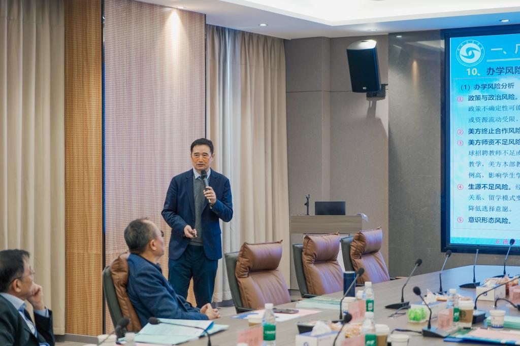 联合科技学院常务副院长何涛教授汇报了中外合作办学和高质量发展工作。学院常务副院长何涛教授详细介绍了学院在专业建设、课程体系设计、教学质量保障体系建设等方面的持续创新。学院紧扣社会经济发展脉搏,通过优化学科布局与课程设置,形成与国际教育接轨的培养模式,未来将继续贯彻“以质量为核心”的发展理念,全面推动教育教学模式转型升级,加强国际合作、推动学科交叉融合、探索新型教育生态,培养具备全球视野的高素质应用型人才。
