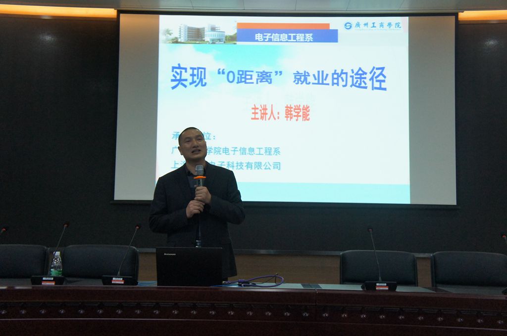 3月17日晚,电子信息工程系为系部学生举办了“实现‘零距离’就业的途径”的讲座报告,校企合作单位上海英仑公司韩学能总监担任主讲。电子系14、15级电子信息工程本科班四百多位同学满怀热情认真聆听了本次讲座,学生活动中心六楼会议室座无虚席。