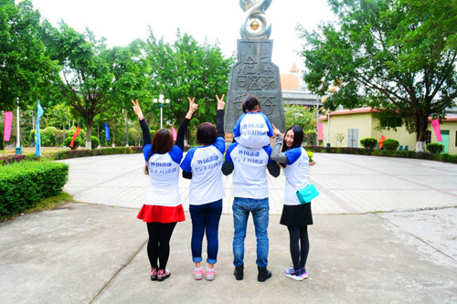 会后,外语系的校友们身着自发组织印制的带有学院20周年校庆logo的T恤集体合影留念。(外语系)