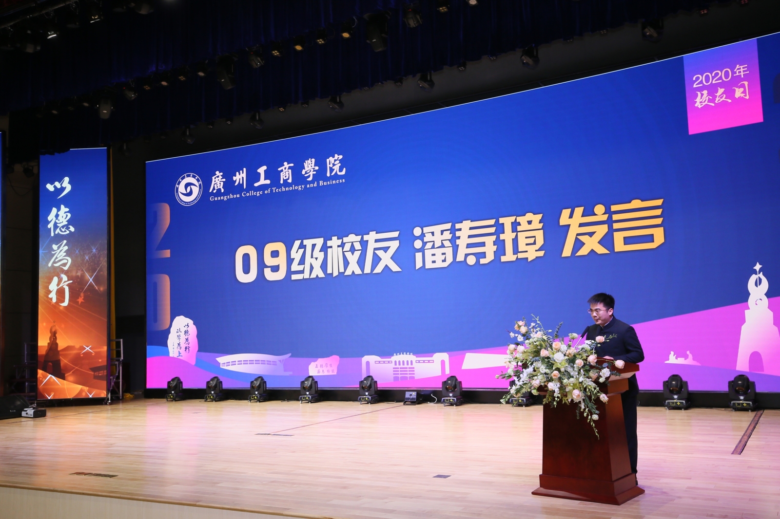 颁奖典礼上,优秀校友代表为学院领导班子成员敬献鲜花,感谢领导教诲,感谢师长付出,感谢母校给予的关怀与帮助。