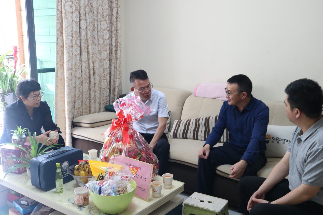 2023年5月10日上午,校领导朱特威副校长、陆志丹主任以及校友会办公室余伟波主任、李斯亮老师、学生助理团代表等人前往陈老师家里进行慰问。校领导仔细询问了陈老师的病情及治疗情况,并送上慰问礼品及筹得的捐款,同时嘱咐陈老师要以平常心态安心养病,保持乐观的情绪和积极向上的心态。陈老师精神状态良好,表示病愈后身体状态逐渐恢复,倍感校领导、同事、校友的关怀和温暖,激动之情溢于言表,表示一定会好好休养。