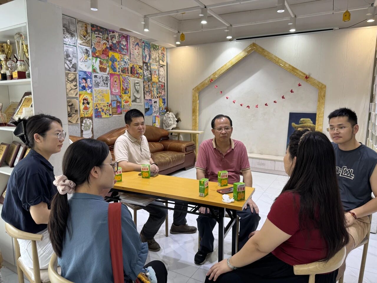 在交流中,余伟波主任结合星耀教育的发展现状,认为可以联动学校教职工资源,推动教职工子女艺术辅导项目落地。他表示,校友会与美术学院将积极协助对接学校工会,共同促成合作。双方一致认为,有关培训形式、内容设置等具体实施方案,有待后续进一步细化与完善。而钟院生副秘书长则提出了建设“校友驿站”的构想,希望依托星耀教育的空间与资源,打造一个凝聚校友情感、促进资源共享的实体平台。双方随即就“校友驿站”的落地可行性进行了初步探讨,期待未来能将其建设成为汇聚校友力量、服务校友发展的枢纽型平台。