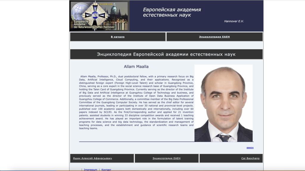 ALLAM MAALLA(阿拉拇),欧洲自然科学院院士,教授,工学博士,双博士后, 硕士研究生导师,广东省外籍高层次人才认定外籍知名专家学者,外国人工作许可证(A类)高端人才,广东省计算机学会大数据专业委员会委员, SCI-EI国际期刊和会议审稿人,担任多个国际期刊主编,数据科学与大数据技术专业负责人。主持和参与国家、省级项目30多项,先后在国内外期刊等发表学术论文第一作者80余篇,多数篇已被SCI一区检索,个人已申请专利20项,其中国家发明专利13项,已获授权专利8项。(工学院)