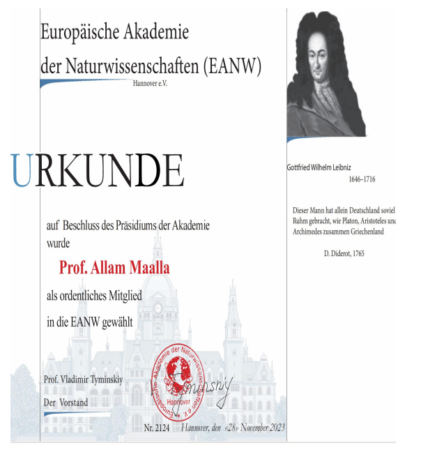 此次ALLAM MAALLA(阿拉拇)教授的成功当选,是国际科技界、学术界对其科学成就的充分肯定,也是对阿拉拇教授多年来与欧洲科学家合作的高度认可!