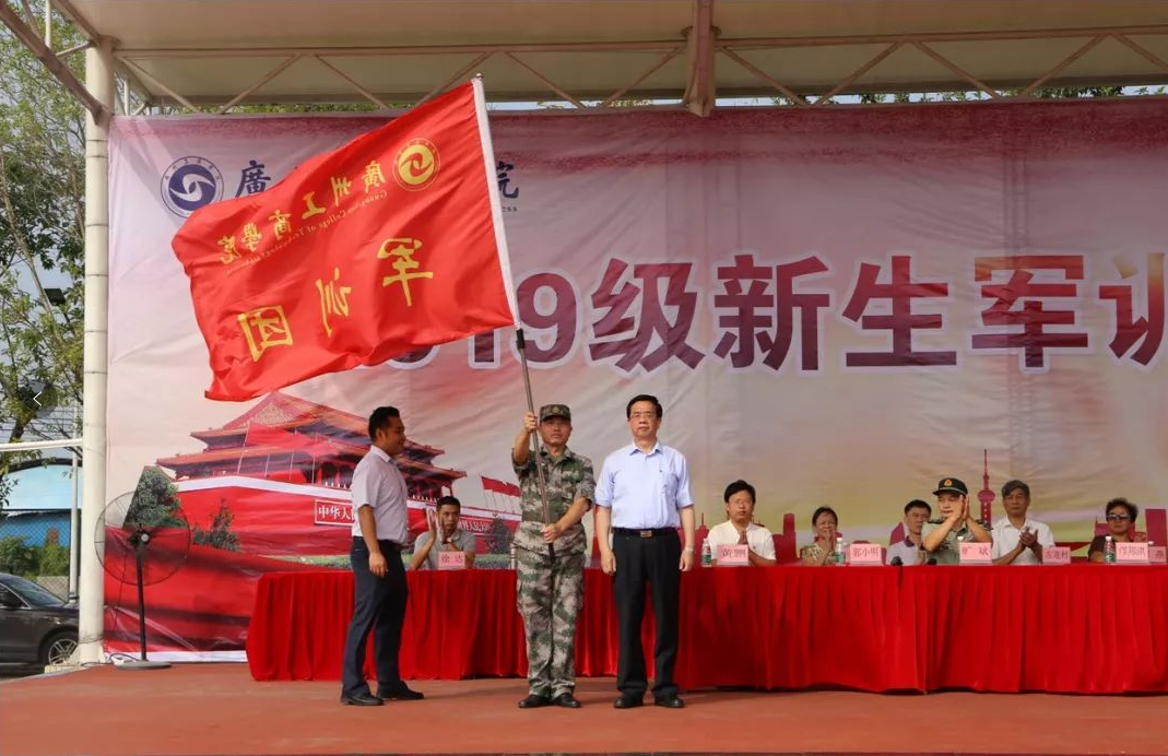 军训团团长陈光和花都区武装部副部长旷斌中校发言。他们讲到,在普通高等学校开展学生军事训练,是贯彻《中华人民共和国国防法》《中华人民共和国兵役法》《中华人民共和国国防教育法》等法规的要求,是同学们跨进大学校门必修的一课。通过严格的军事训练,提高政治觉悟,增强国防观念和组织纪律性,养成良好的学风和生活作风,为今后的治学成才之路甚至走上社会打下良好的基础。同时,他们向新生们提出三点要求:一是要端正态度、提高认识,二是要服从命令、严格要求、团结协作,三是要全身心投入、顽强拼搏、超越自我。他们还要求教官们做到科学组训、文明施训,既严格要求又关心爱护学生,与学院老师共同完成高标准军训任务。