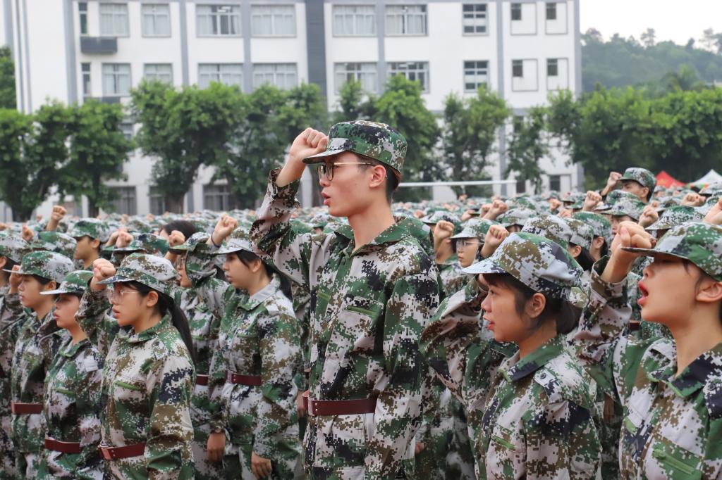 受训学员代表发言并领誓。他们表示,将十分珍惜这次宝贵的军训机会,做到强健体魄、磨练意志,提升综合素质,为日后的大学生活打下良好基础。
