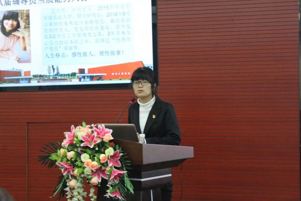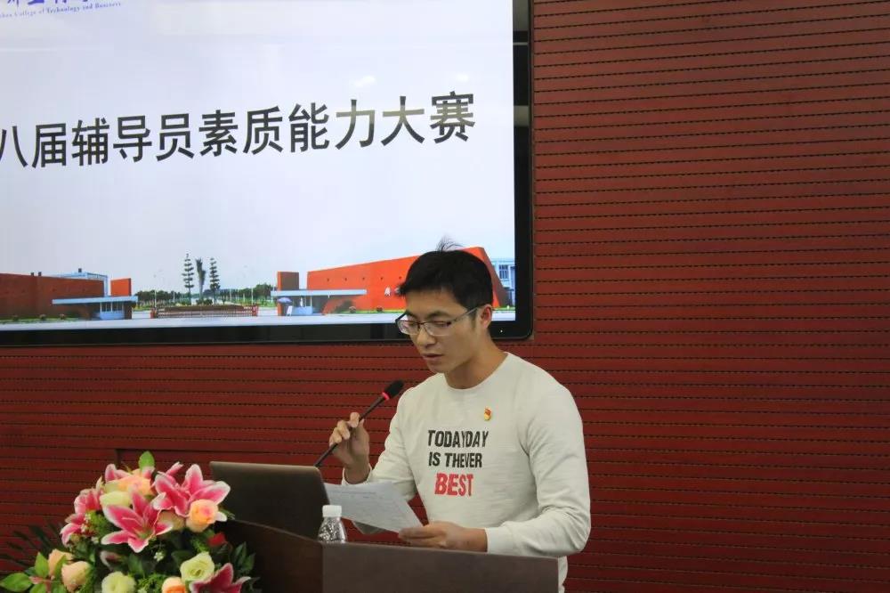 大赛共分为笔试和现场展示两个环节。笔试已于12月16日进行完毕,按笔试成绩高低从众多优秀选手中选拔出8名辅导员进入了此次决赛,他们分别是:工商管理系陈影老师、物流系张永训老师、经济贸易系白园园老师、外语系何玉花老师、电子信息工程系吴玉丽老师、美术系范许哲老师、公开学院金洁璐老师、计算机系宋珺老师