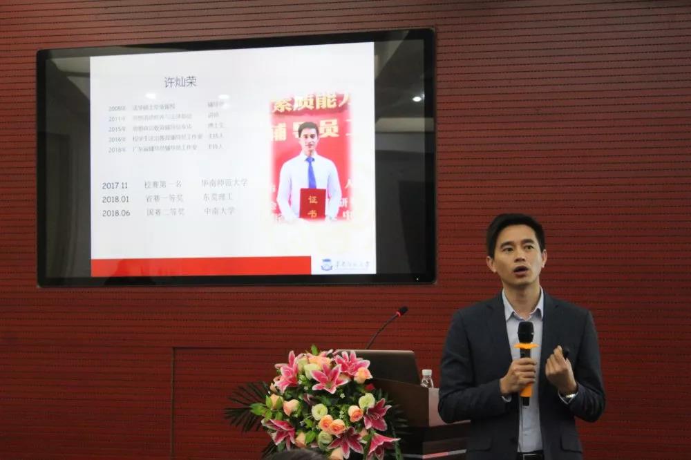 许灿荣博士分享参赛经验。他从自己的参赛经历出发,向比赛选手分享了自己的经验和体会,并提出相关建议。