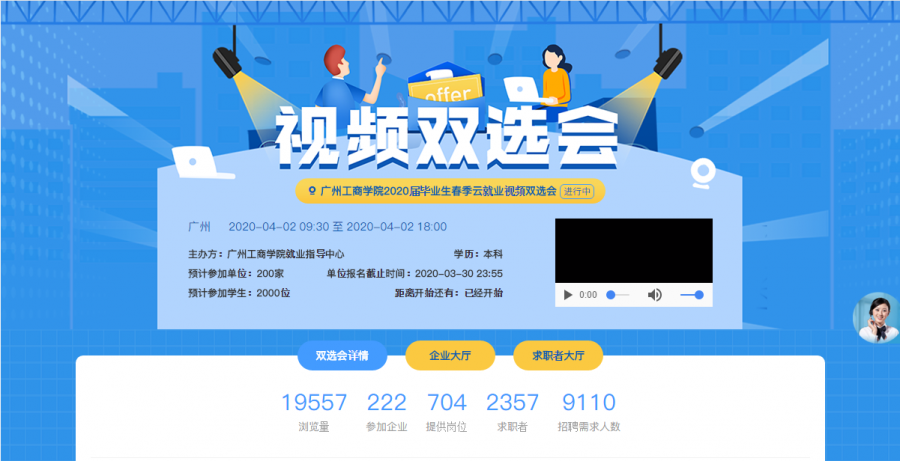 为进一步落实教育部关于应对新冠肺炎疫情做好2020届全国普通高等学校毕业生就业创业工作的通知要求,最大限度阻断疫情传播扩散渠道,减少人员接触,积极搭建好学生与用人单位之间的沟通交流平台,增强毕业生求职和用人单位招聘的有效性,弘扬“以德为行 以学为上”的教育思想,积极践行“五进”教育活动,学院招生就业办联合“云就业”校招平台处积极筹备、精心组织,科学制订双选会的工作方案。前期,学院向用人单位发出了网络视频双选会邀请函,多渠道发布双选会信息,从报名参会的企业中严格甄选符合学院专业设置和学生需求的用人单位。为保障双选会顺利举行,招生就业办工作人员制作了操作指南及注意事项,通过推文和短信形式推送给每位毕业生。通过双选会平台,用人单位可实现直接线上发布岗位需求、在线筛选简历、远程面试签约,毕业生可进行在线查询招聘信息、远程面试签约,实现全程线上双选。(招生就业办陈晓如)