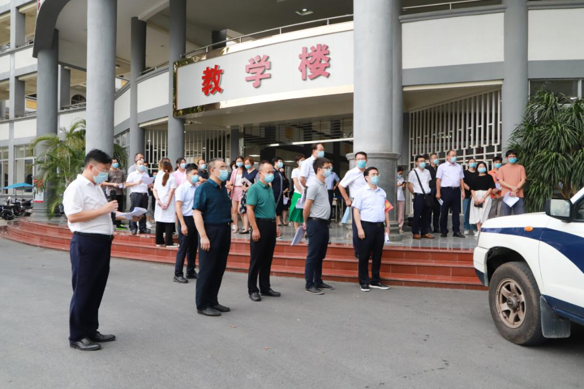 为进一步做好学生返校各项准备工作,切实提高ky开元学生返校疫情防控和遇突发状况的应急处置能力,保障师生返校各项工作安全有序开展,8月25日,学校在花都校区举办学生返校疫情防控模拟演练。演练活动在教学楼举行,狮岭镇副镇长黄楷滨,合成社区卫生服务中心、合益派出所、新合社区居委会相关负责人,学校疫情防控领导小组成员、中层正副职领导出席,演练活动由校长助理兼学生处处长黄鹏主持。