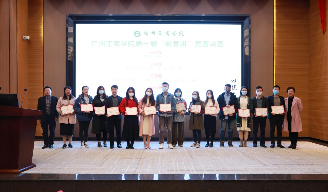 学校校长邝邦洪,副校长朱特威、副校长张辉,董事办主任陆志丹,校长助理兼学生处处长黄鹏、校长助理李丹仪分别为第一届“微宣讲”竞赛决赛获奖单位及个人,2021年招生、就业工作先进集体和先进个人进行颁奖。