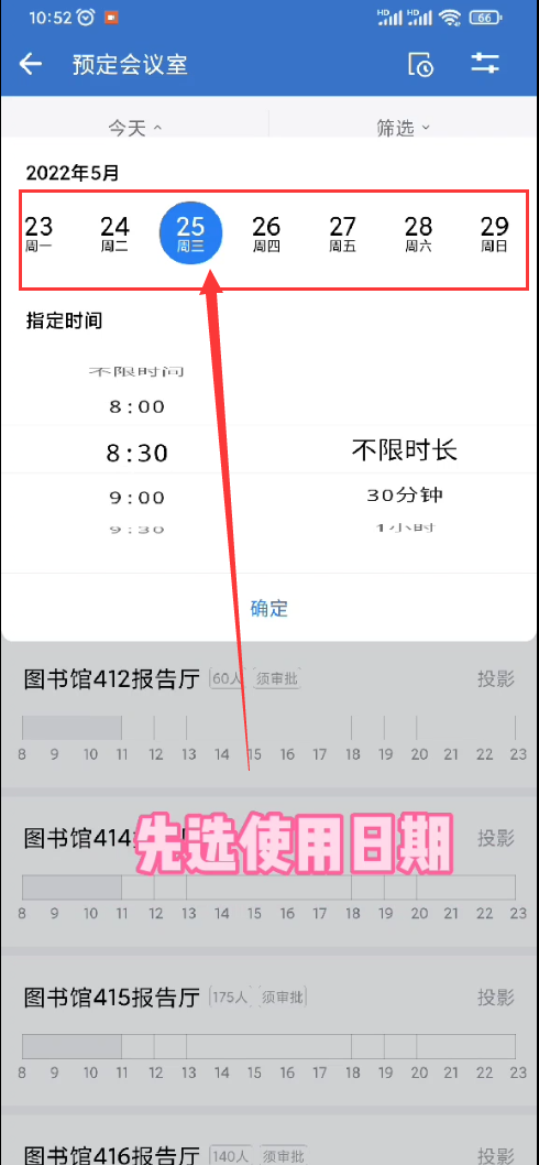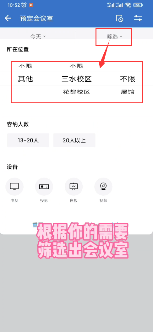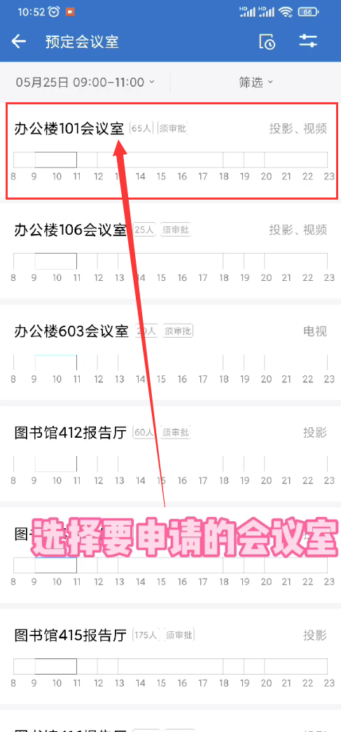 3、根据校区、楼宇,筛选出你想申请的会议室