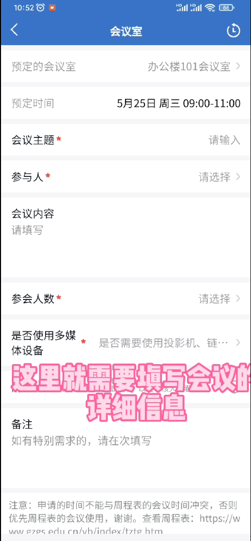 9、填写会议的详细信息