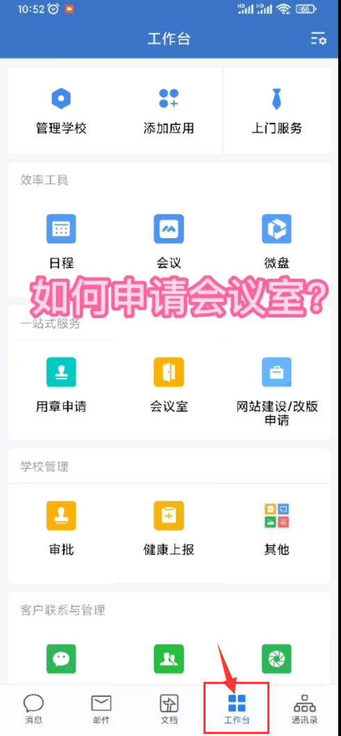 1、登录企业微信,切换“工作台”栏目