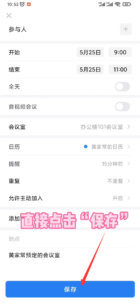 (1)选择参会人:如果人员比较多,可以只选择部分人员;会议室审批通过后,勾选的参会人也会收到会议提醒,在企业微信的日程表也会有会议记录。