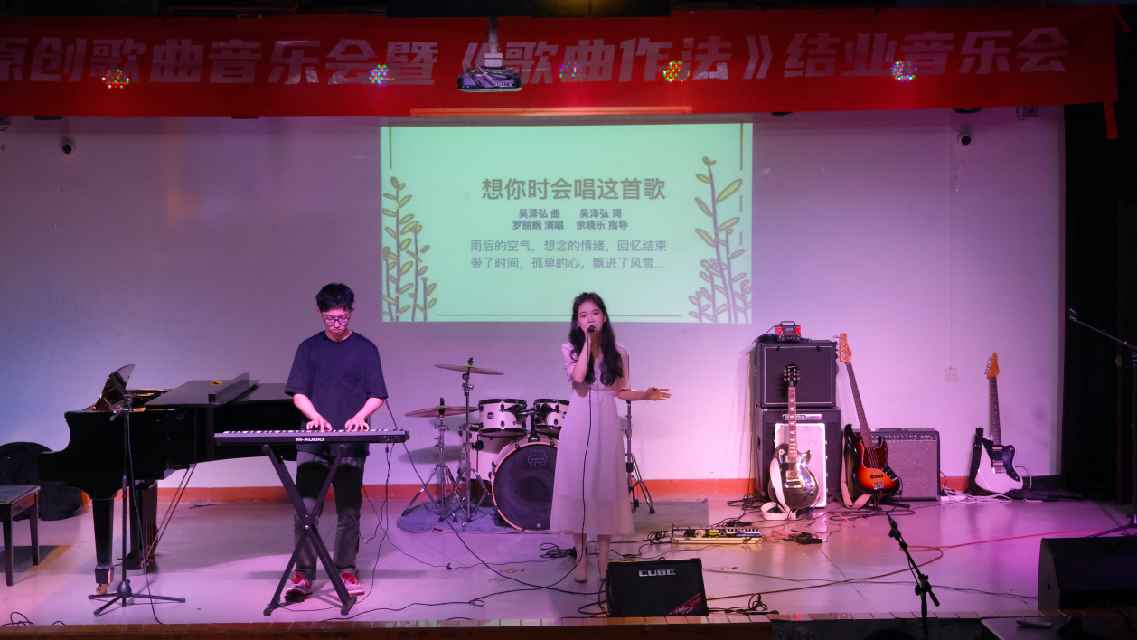 6月8日晚,音乐学院首届原创歌曲音乐会暨《歌曲作法》结业音乐会在商学院105演播厅举行。